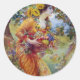Imagem de arte vítrea de mulher com vestido florescente e girassóis no cabelo. Cores do outono em pintura de Franz Dvorak.
