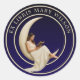 Adesivo Redondo Mulher Lendo Sobre Moon Crescente Ex Libris Modelo