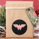 Adesivo Redondo Mulher Maravilha Logotipo rosa e malha laranja