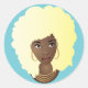 Adesivo Redondo Mulher Negra, Cabelo Louro, Azul