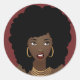 Adesivo Redondo Mulher Negra, Cabelo Natural, Expressão Enrugada
