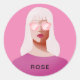 Um adesivo clássico, cor-de-rosa, com uma mulher clássica, cabelo e óculos cor-de-rosa, e um nome personalizável. Para cartas de música, presentes, para escola e escritório.