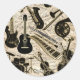 Adesivo Redondo Música em folha e instrumentos preto/Dourado
