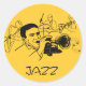 Adesivo Redondo Músico JAZZ com trompete e notas musicais