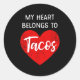 Adesivo Redondo My Heart Belongs To Tacos - Funny Valentines Day