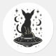 Adesivo Redondo Mystical Cat on UFO with Stars & Moons