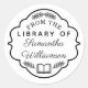 Adesivo personalizado de script personalizado elegante do livro de nomes personalizado. Design apresenta o nome na caligrafia elegante de script. Design é enquadrado em uma borda decorativa elegante com elementos de folha que enquadram o nome do script design com um ícone de livro simples. Um belo adesivo personalizado para adicionar um toque personalizado à sua coleção de bibliotecas de livros. Projetado por Papelaria de Moodthologia