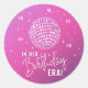 Em sua era de aniversário, era party, eras Party Any Age Party Stickers apresenta uma bola simples de brilho na discoteca com o texto "In Her Birthday Era" em um moderno roteiro de tipografia branca. Perfeito para qualquer época das celebrações da festa de aniversário Swifties. Projetado pelo Evco Studio. Para obter informações sobre a coordenação de itens, consulte www.zazzle.com/store/evcostudio