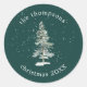 Adesivo Redondo Na moda de Natal Árvore Neve Verde