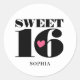 Doce 16 adesivos retrorreflectores! Perfeito para a estrela de aniversário que ama vibrações vintage e estilo ousado. A design apresenta 'Doce 16' na tipografia na moda, sobreposta com coração de amor. Simplesmente personalize a modelo com o nome da adolescente. Os autocolantes personalizados podem ser usados para favoritos para festas, para fixar fitas, cartões e etiquetas no seu invólucro de presentes ou como um selo de envelope para convites e cartões de saudação. Cores impressas: rosa, branco e preto.