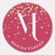 Adesivo Redondo Na moda Glam Red Dourado Glitter Monograma inicial