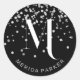 Adesivo Redondo Na moda Glam Silver Glitter Nome Negro Monograma