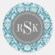Adesivo Redondo Na moda Monograma Trio - Damasco Teal