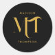 Adesivo Redondo Na moda preto e Dourado Monograma - Letras iniciai