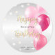 Adesivo Redondo Na moda Starry Happy Birthday e balões rosa