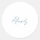 Adesivo Redondo Name Calligraphy Script Plain Simple White Blue