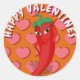 Um personagem de desenho animado de pimenta vermelho e quente. design da versão dos namorados. Adesivos personalizados para amantes de comidas picantes.