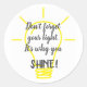 Não esqueça a sua luz. É por isso que você brilha! Espalhe sua positividade e sabedoria inspiradora com este botão incrível. Compre este botão alto, alegre e positivo para levantar os espíritos dos outros enquanto o veste. Ofereça a um amigo, colega ou membro da família para trazer um sorriso para o rosto.