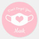 Adesivo Redondo Não esqueça sua máscara rosa e branco