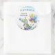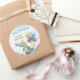Dino Party Watercolor Boy Blue Birthday Classic Round Sticker Belo e bonito convite de aniversário para um menino com um tema de dinossauro. Dinossauro pintado em aquarela com balões de aniversário. Este convite é perfeito para o seu filho que ama a natureza e os dinossauros. Confira toda a coleção e comemore o aniversário do seu filho com este lindo tema da festa de dino.