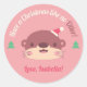 Um bonitinho adesivo decorativo de Natal com uma mensagem de trocadilho de Natal: "Tenha um Natal como sem Otter!" Decorado com um rosto fofo de uma lontra vestindo um pequeno chapéu vermelho de Papai Noel e dois ícones da árvore de Natal. Personalize com o nome.