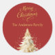 Adesivo Redondo Natal da árvore de ouro vermelho
