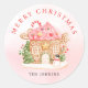 Feliz Natal Pink Gingercake House Round Sticker é perfeito para etiquetas de presentes, selos de envelopes e bolsas a favor. Editar texto clicando em Personalizar. Itens correspondentes na nossa loja, design de festa do Cava.