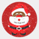 Este é um adesivo charmoso que você pode usar para selar seus envelopes de Natal com um toque festivo. Ele apresenta uma ilustração encantadora de um Papai Noel preto que tem uma barba branca lisa. Ele está vestindo um terno e chapéu vermelho e branco tradicionais, e ele está cercado por flocos de neve que brilham sobre o fundo vermelho. Este adesivo é perfeito para celebrar o feriado com um Papai Noel afro-americano giro e caprichoso.
