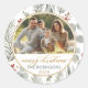 Adesivo Redondo Natal do Dourado Script de Folhagem de Aquarela