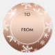 Adesivo Redondo Natal Dourado com flocos de neve brancos