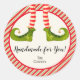 Crie autocolantes para etiquetar seus produtos caseiros de Natal, biscoitos, doces, doces, doces, favoritos para festas e mais com pernas de elfo divertidas com botas verdes, miras listradas e sinos de jingle com sua mensagem em caracteres quicos. CORRESPONDENDO a itens na nossa loja.