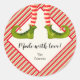 Crie autocolantes para etiquetar seus produtos caseiros de Natal, biscoitos, doces, doces, doces, favoritos para festas e mais com pernas de elfo divertidas com botas verdes, miras listradas e sinos de jingle com sua mensagem em caracteres quicos.