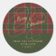 Adesivo Redondo Natal Feliz dourado script rustico xadrez vermelho