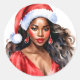 Adesivo Redondo Natal Linda Mulher Negra Santa Hat