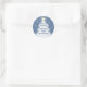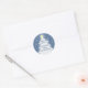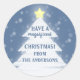 Design de árvore de Natal azul e branca com estrela amarela e neve caindo. Altere facilmente qualquer texto.