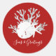 Adesivo Redondo Natal na praia costeira Mares vermelhos e saudaçõe