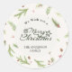 Natal natural Mínimo elegante adesivo botânico redondo Eleve seus cartões de natal com nosso "Design de fotos personalizadas do Natal do feriado mínimo moderno de folhagem verde de Natal personalizado." Este sofisticado design combina eucalipto pintado à mão, folhagem minimalista, e uma coroa rattan moderna, criando uma estética de férias elegante e luxuosa. Com uma paleta de matizes naturais, verde-sábio, preto, castanhos e cinzentos, este cartão expele as classes de eterno e charme sazonal. Personalize-o com suas próprias fotos para um toque verdadeiramente especial.
