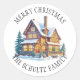 Bonito cabana na floresta nevada personalizou os autocolantes de Natal.