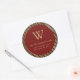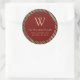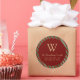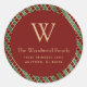 Este elegante adesivo de endereço de retorno apresenta um círculo vermelho burgundy sobre um padrão de quatrefoil em burgundy, verde e ouro. Personalize o design com seu nome inicial e familiar monograma na fonte dourada serif, com seu endereço abaixo em sans serif.