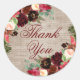 Adesivo Redondo Natal Rústico Boho Floral Borgonha Obrigado