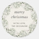 Perfeito para selar seus cartões de natal e presentes de Natal, esses adesivos elegantes de 1,5" apresentam sua mensagem e nome personalizados cercados por uma coroa de folhas botânicas de cor aquática verde-mutada e minúsculas bagas brancas em um fundo de marfim rústico. Projetado para coordenar com nossa coleção de feriados Naturalmente Alegres.