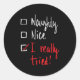 Adesivo Redondo Naughty Nice I Really Tried - Funny Christmas