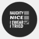Adesivo Redondo Naughty Nice I Swear I Tried Funny Christmas