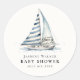 Adesivo Redondo Nauti-Bouy Blue Stripe Sailboat Baby Shower