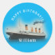 Adesivo Redondo Navio de Linha White Star Aniversário Azul Titanão
