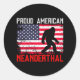 Adesivo Redondo Neandertal Americano Orgulhoso | Pavilhão EUA e Pé