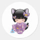 Adesivo Redondo Neko Kokeshi Doll - Cat Ears Geisha Girl