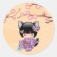 Adesivo Redondo Neko Kokeshi Doll Cat Orelha Garota Geisha Amarelo