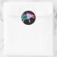 Um axolotl cor-de-rosa e azul neon sobre fundo preto.