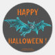 Diversão e design engraçada para o Halloween, morcego neon (parece muito assustador sob uma luz negra) exclamando Feliz Halloween. Excelente para selar cartões de Dia das Bruxas ou como guloseimas. Personalize alterando o texto para refletir seus próprios pensamentos de Halloween. Feliz Dia das Bruxas!